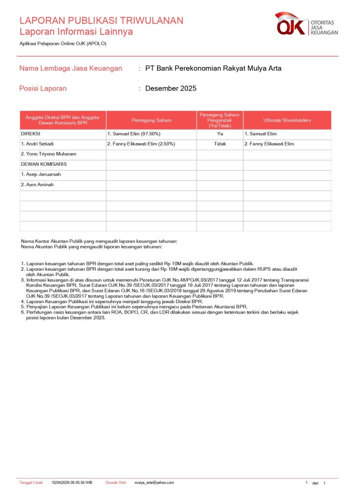 Jajaran Management BPR Mulya Arta